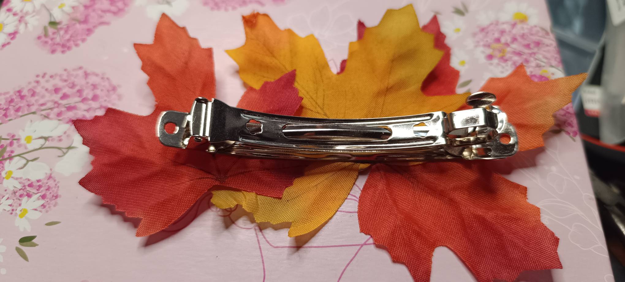 Offrez à vos cheveux un souffle de magie automnale avec cette grande barrette Rayon de lune de 10 cm, entièrement inspirée par les couleurs de la saison des sorcières. Véritable talisman, elle capture la puissance des feuilles qui tombent, la beauté des forêts embrasées et l’énergie de transformation propre à l’automne.