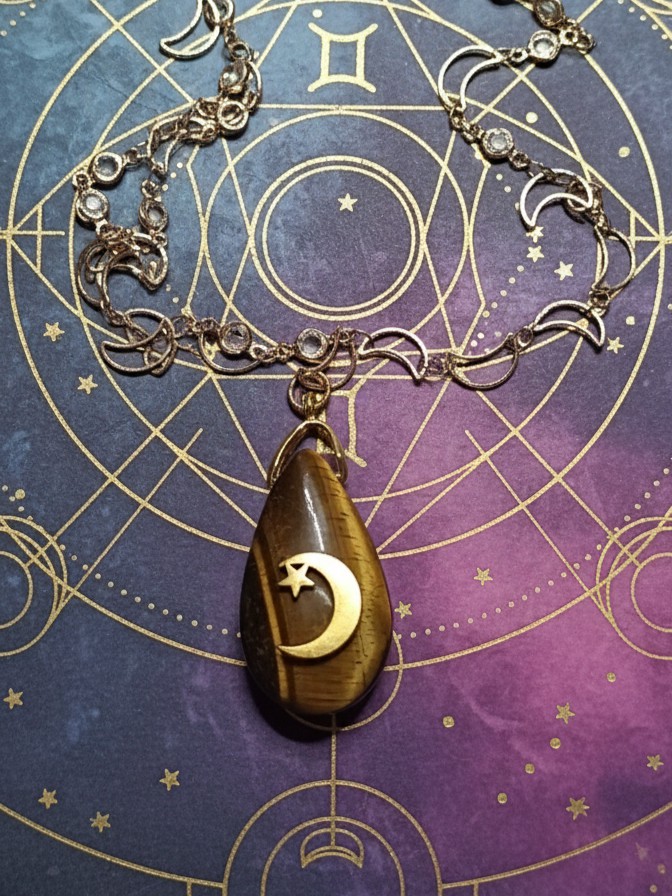 De plus, la chaîne ornée de croissants de lune et de cristaux lumineux renforce l’aura magique de ce bijou. Légère et raffinée, elle met en valeur la pierre avec élégance, créant un ensemble harmonieux et symbolique. Ce collier se porte aussi bien en journée qu’à la tombée de la nuit, apportant une touche mystique et dorée à votre tenue.