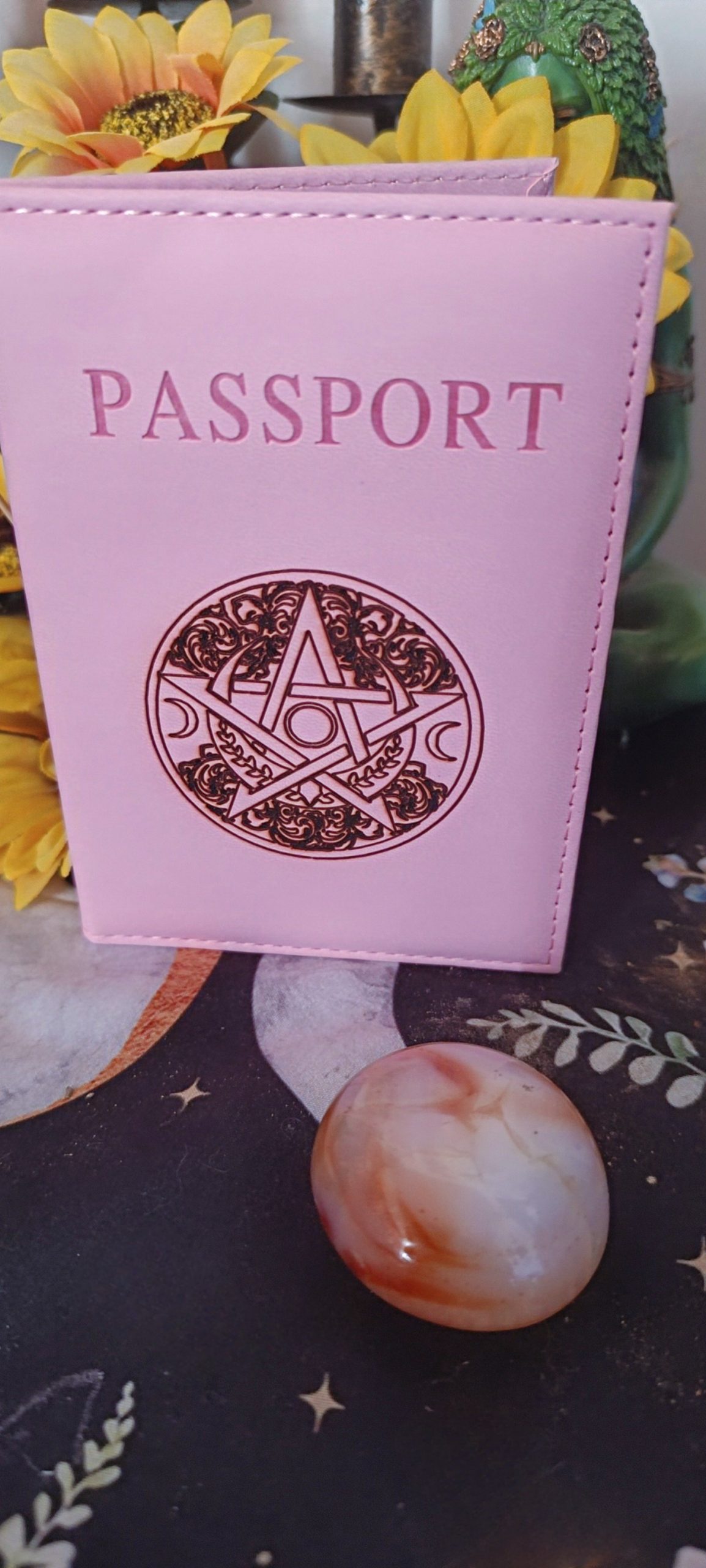 Protège passeport pentacle – Étui de protection spirituel de couleur rose