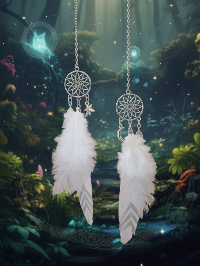 Plongez dans la magie apaisante de l’élément Eau avec le Talisman de l’Esprit de l’Eau, un bijou porte-bonheur inspiré des forces subtiles de la nature. Conçu comme un véritable amulette protectrice, il symbolise la fluidité, la créativité et la paix intérieure. Ses plumes blanches évoquent la pureté et la légèreté, tandis que ses cercles argentés ornés de charms lunaires et étoilés rappellent la connexion sacrée entre le ciel et l’eau.